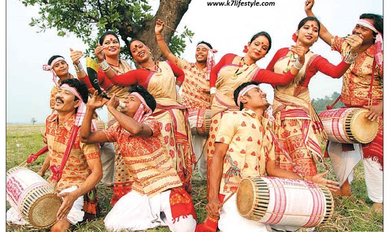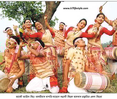 Bihu is a set of three important Assamese festivals in the Indian state of Assam[4] – 'Rongali' or 'Bohag Bihu' observed in April, 'Kongali' or 'Kati Bihu' observed in October, and 'Bhogali' or 'Magh Bihu' observed in January.[5] The Rongali Bihu is the most important of the three, celebrating spring festival. The Bhogali Bihu or the Magh Bihu is a harvest festival, with community feasts. The Kongali Bihu or the Kati Bihu is the sombre, thrifty one reflecting a season of short supplies and is an animistic festival.[6]The Rongali Bihu coincides the Assamese New year and as well as with other regions of Indian subcontinent, East Asia and South-East Asia, which follow the Hindu calendar and Buddhist calendar.[7] The other two Bihu festivals every year are unique to Assamese people. Like some other Indian festivals, Bihu is associated with agriculture, and rice in particular. Bohag Bihu is a sowing festival, Kati Bihu is associated with crop protection and worship of plants and crops and is an animistic form of the festival, while Bhogali Bihu is a harvest festival.[8][9] Assamese celebrate the Rongali Bihu with feasts, music and dancing. Some hang brass, copper or silver pots on poles in front of their house, while children wear flower garlands then greet the new year as they pass through the rural streets.[10]The three Bihu are Assamese festivals[10] elders in family, fertility and mother goddess, but the celebrations and rituals reflect influences from Southeast Asia and Sino-Tibetan cultures.[11][12][13] In contemporary times, the Bihus are celebrated by all Assamese people irrespective of religion, caste or creed.[14] It is also celebrated overseas by the Assamese diaspora community living worldwide.The term Bihu is also used to simply Bihu dance otherwise called Bihu Naas and Bihu folk songs also called Bihu Geet